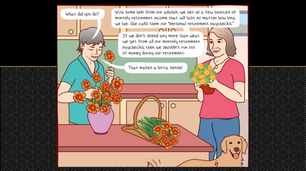 “Retirement Illustrated” is an online series of short, illustrated chapters that follow several pre-retirees and retirees as they navigate real-life retirement decisions. Each visual story takes just five to ten minutes to read, introducing big retirement questions in a way that feels easy, rather than overwhelming.