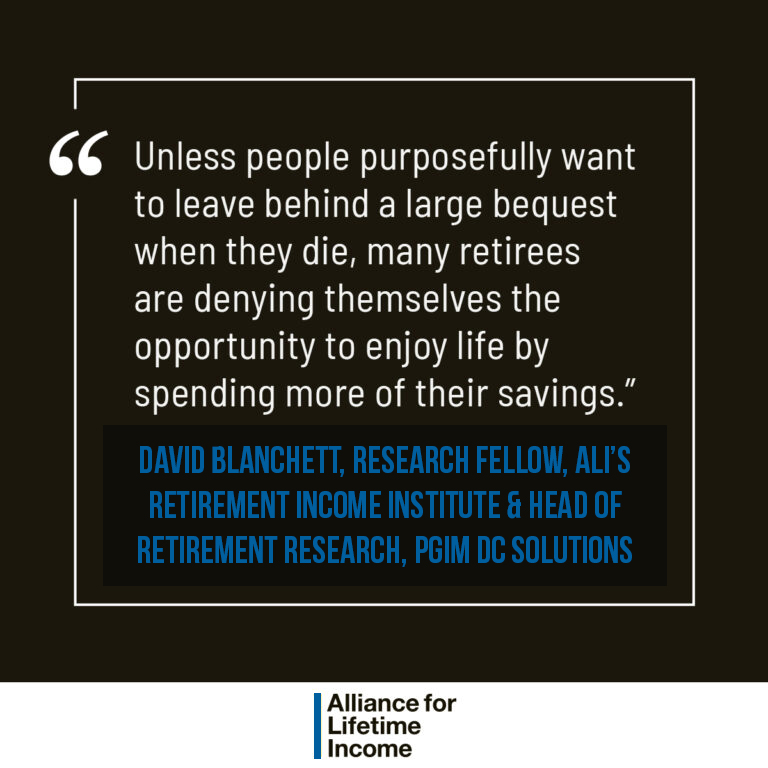 These findings come from a new study, Retirees Spend Lifetime Income, Not Savings, by David Blanchett and Michael Finke, Research Fellows at the Retirement Income Institute (RII) of the Alliance for Lifetime Income. The research builds on their groundbreaking RII paper from last year, Guaranteed Income: A License to Spend, which showed that retirees enjoy life more when they feel comfortable spending their money.